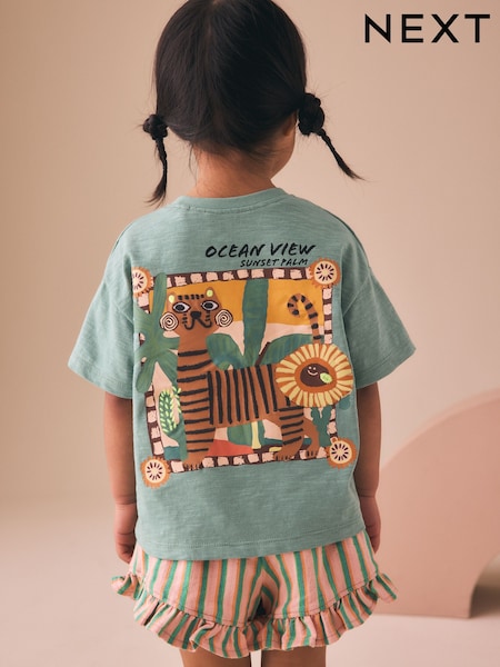 綠色老虎 - 短袖 T 裇和短褲套裝(3 個月-7 歲)