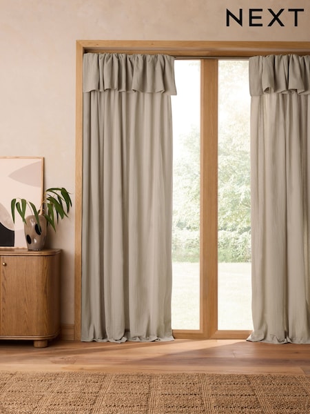 Cotton Muslin Ruffle Top Fold Over Lined Curtain