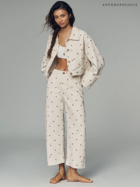 Anthropologie Maeve The Colette Full-Length Wide-Leg White Jeans