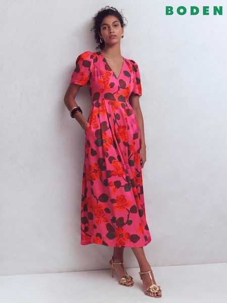 Boden 百褶 V 領絲質連身裙