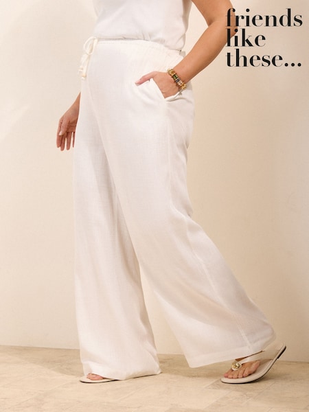 象牙白 - Friends Like These Wide Leg Tie Waist Linen Trousers