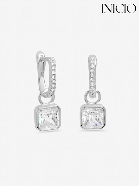 Inicio Cushion Drop Cubic Zirconia Pave Hoops Gift Pouch