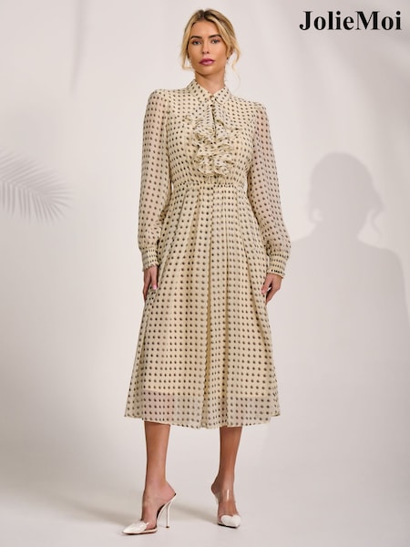 大地色 - Jolie Moi Textured Chiffon Long Sleeve Shirt Dress