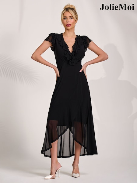 黑色 - Jolie Moi Ruffled Mesh Maxi Dress
