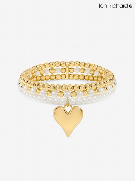Jon Richard Polished and Beaded Heart Charm Multirow Bracelet