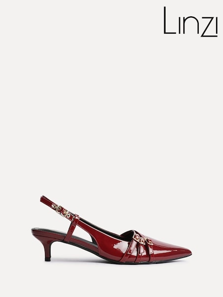 紅色 - Linzi Marseille Peep Toe Mule Heels