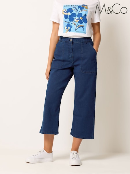 藍色 - M&Co 彈性工裝短版牛仔褲