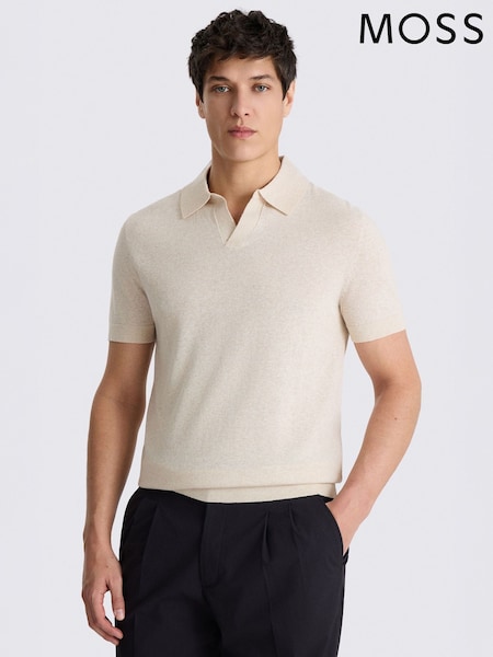 大地色 - MOSS Linen Blend Skipper Polo Shirt