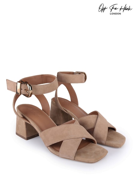 Off The Hook Ruby Suede Leather Heeled Sandals With Crossover Front Strap