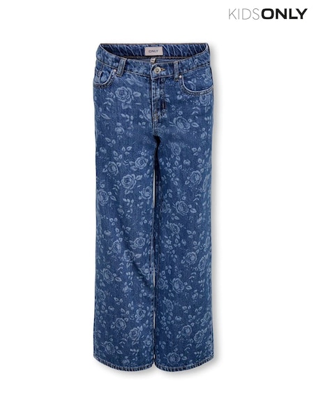 ONLY KIDS High Waist Wide Leg Rose Print Jeans