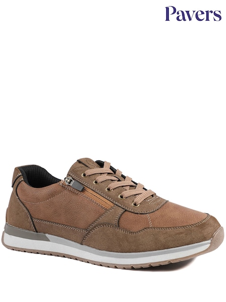 棕色 - Pavers Lace Up Trainers with Grip Sole