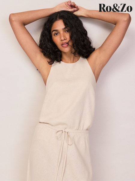 大地色 - Ro&Zo Natural Linen Blend Halter Top