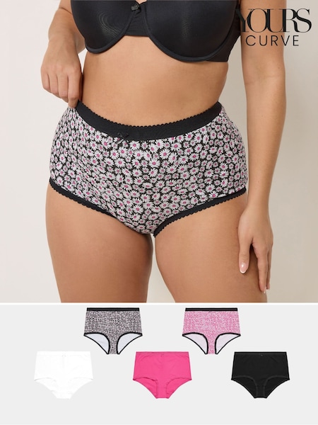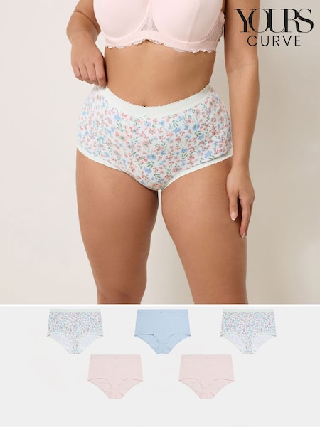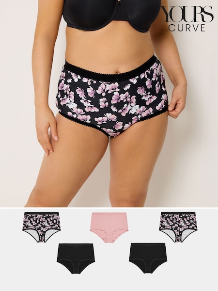Pink Inky Floral Print - Yours Curve 高腰三角褲 5 條裝
