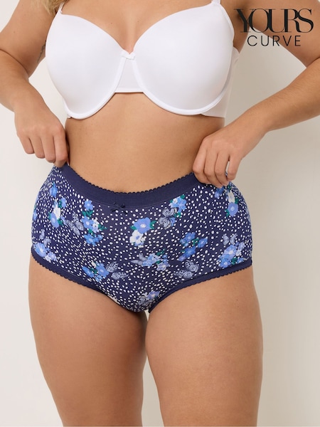 Blue Butterfly Floral Print - Yours Curve 高腰三角褲 5 條裝