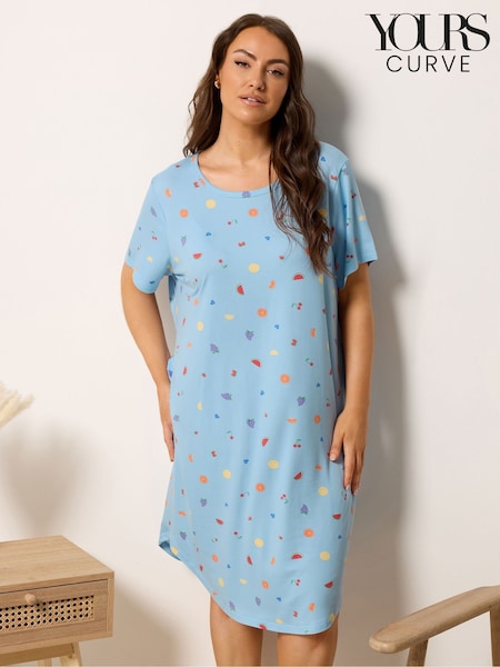 藍色 - Yours Curve Soft Touch Dipped Back Nightdress