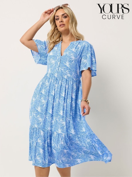 藍色 - Yours Curve Placket Tiered Dress
