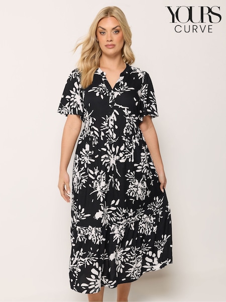 黑色 - Yours Curve Placket Tiered Dress