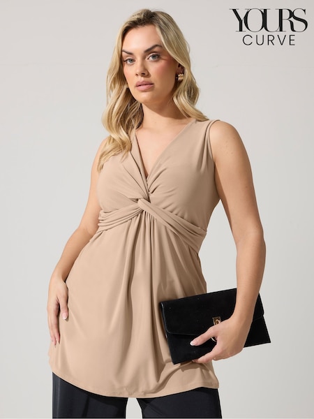 大地色 - Yours Curve London Sleeveless Knot Front Top
