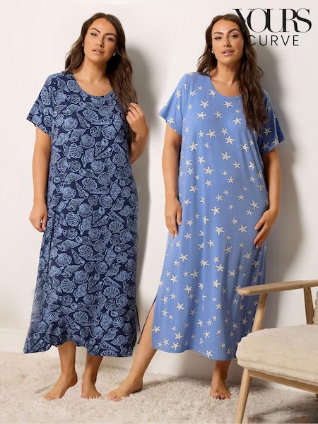 藍色 - Yours Curve Soft Touch Midaxi Nightdresses 2 Pack