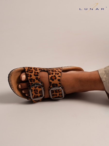 啡色豹紋緞面 - Friends Like These 舒適裸跟休閒平底涼鞋