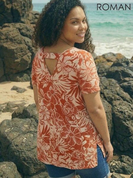 Roman Curve Leaf Print Bar Back Top