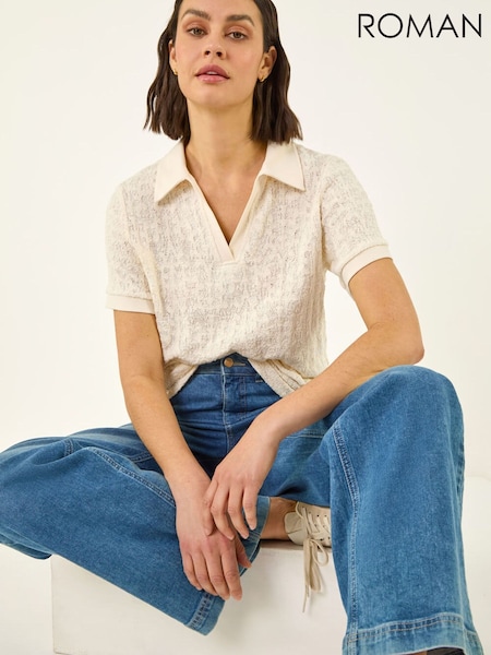 Roman Textured Collar V-Neck Top