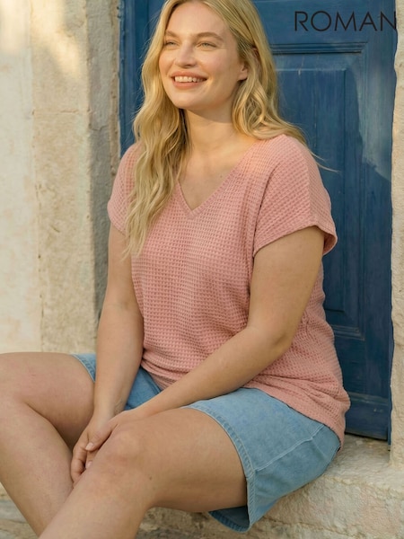 粉色 - Roman 樹葉印花手帕下襬寬鬆外衣上衣