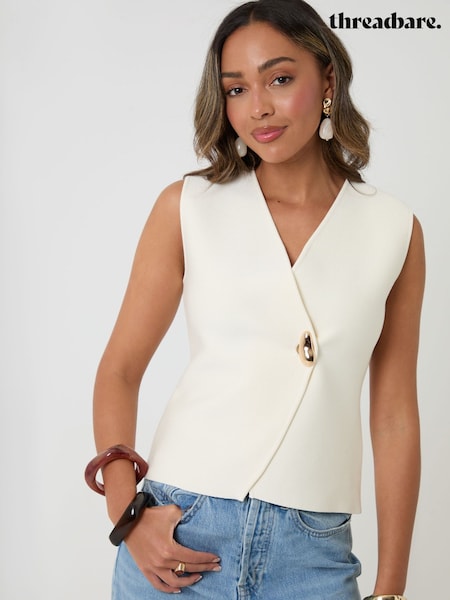 乳白色 - Threadbare V-Neck Knitted Wrap Waistcoat