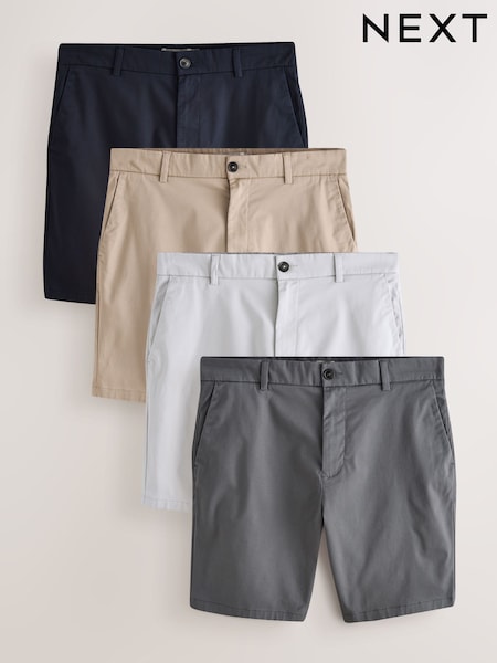 Navy/Stone/Light Grey/Charcoal - 修身剪裁 - 彈力卡其短褲4件組