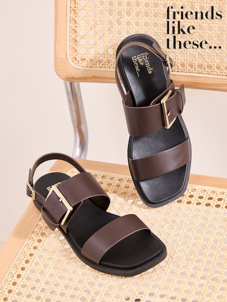 Friends Like These Faux Leather Buckle Two Part Flat Summer Sandals