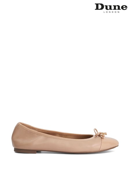大地色 - Dune London 皮革 Hallo 魅力飾邊芭蕾舞鞋
