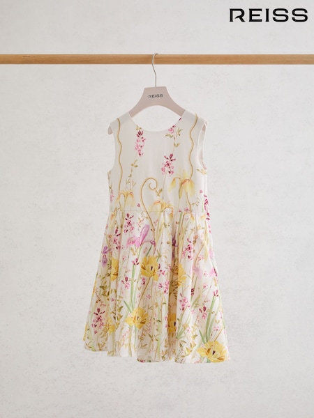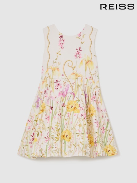 Reiss Fern Cotton Floral-Print Bow-Detail Dress