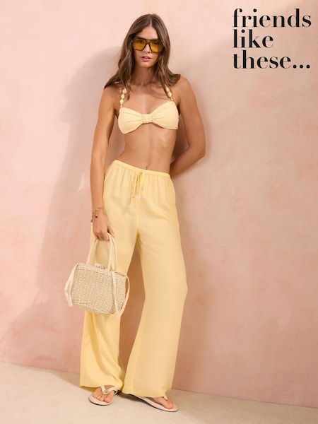 奶酪色 - Friends Like These Wide Leg Tie Waist Linen Trousers