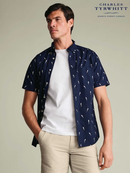 Charles Tyrwhitt Shorts Sleeve Printed Stretch Washed Poplin Shirt