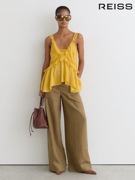 淺卡其綠 - Reiss Ashby 亞麻闊腿長褲