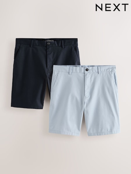 海軍藍/淺藍色 - 修身剪裁 - 彈力卡其短褲2件組