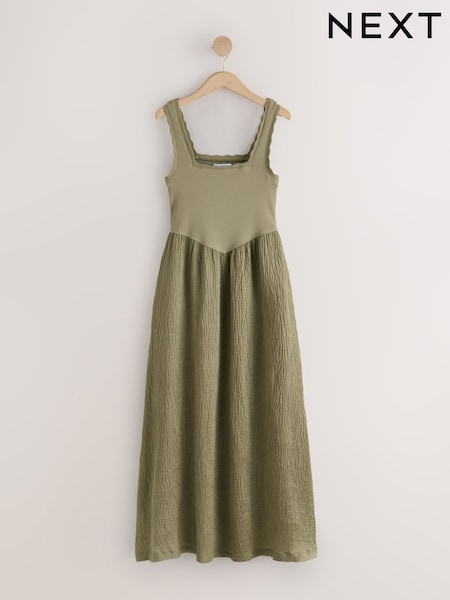 卡其綠色 - Jersey Woven Mix Midi Dress