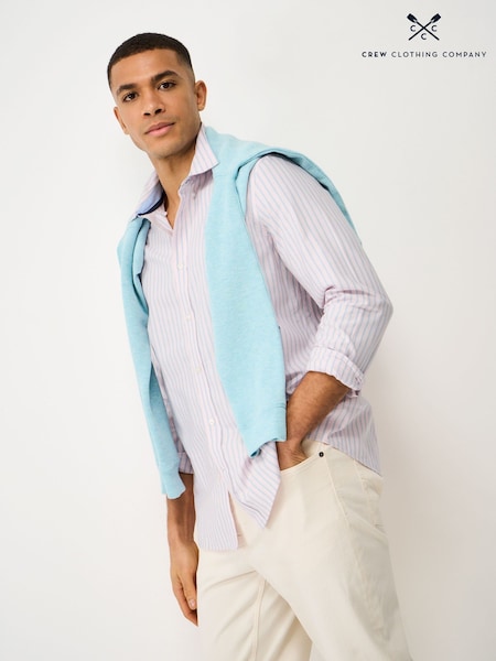 粉色 - Crew Clothing Timsley Stripe Classic Oxford Shirt