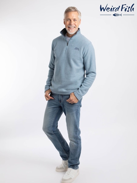 藍色 - Weird Fish Newark 四分之一拉鏈格紋抓絨