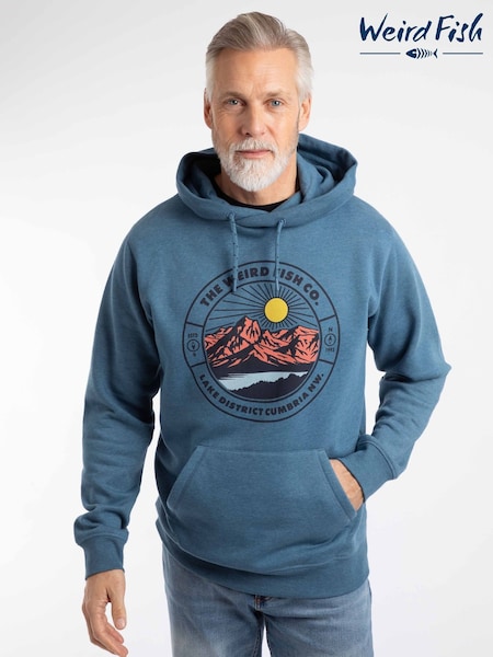 藍色 - Weird Fish Bryant Front Print Graphic Popover Hoodie