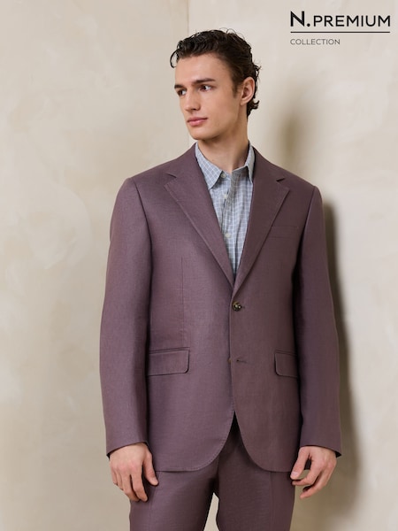 深紫色 - N.Premium Tailored Fit 100% Linen Suit Jacket