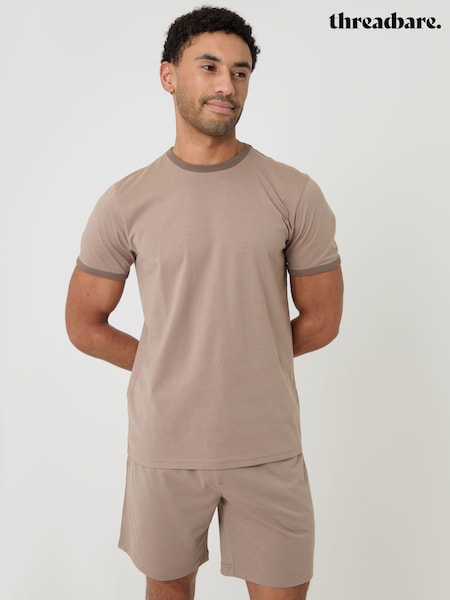 棕色 - Threadbare Contrast Binding Short Lounge Set
