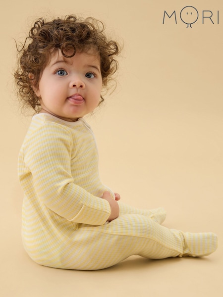MORI Stripe Ribbed Supersoft Two Way Zip Up Sleepsuit