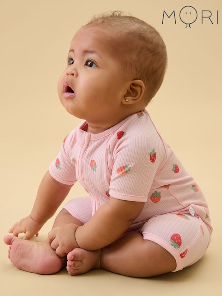 MORI Strawberry Fields Supersoft Ribbed Two Way Zip Up Sleepsuit