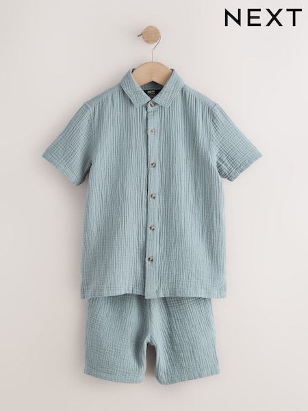 深藍色 - Short Sleeve Double Cloth Textured Shirt and Shorts Set (3-16yrs)