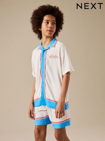 白色 - Short Sleeve Revere Collar Shirt And Shorts Set (3-16yrs)
