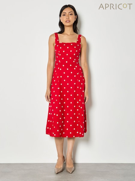 Apricot Polka Dot Woven Midi Dress