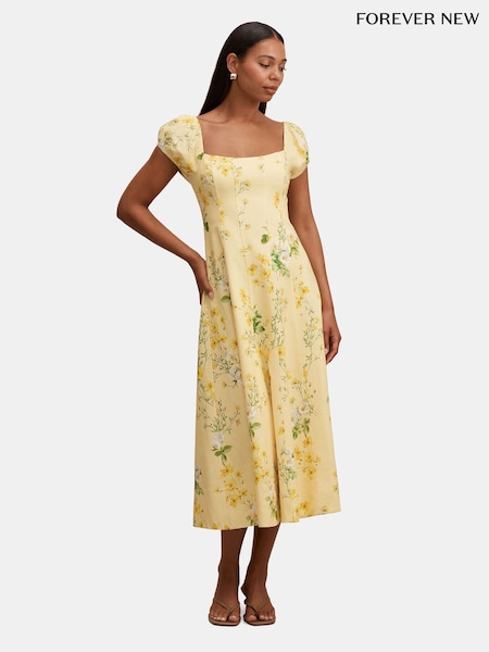 Forever New Sheridan Placement Printed Midi Dress Contains Linen