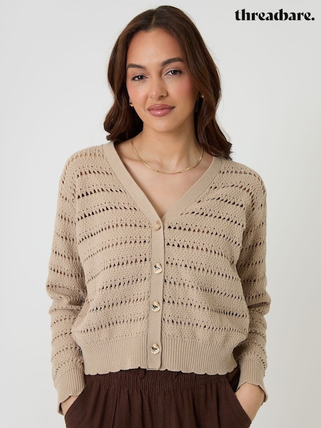 Threadbare Pointelle Knit V-Neck Cardigan