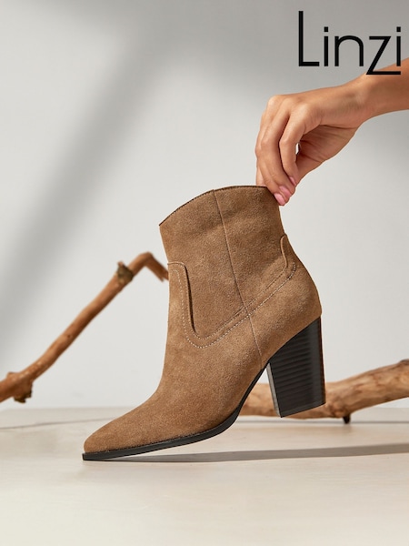 灰褐色 - Linzi Canyon Suede Western Block Heel Ankle Boots